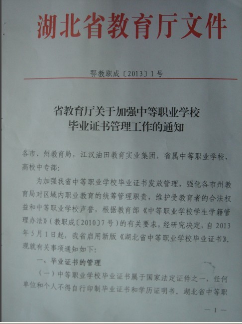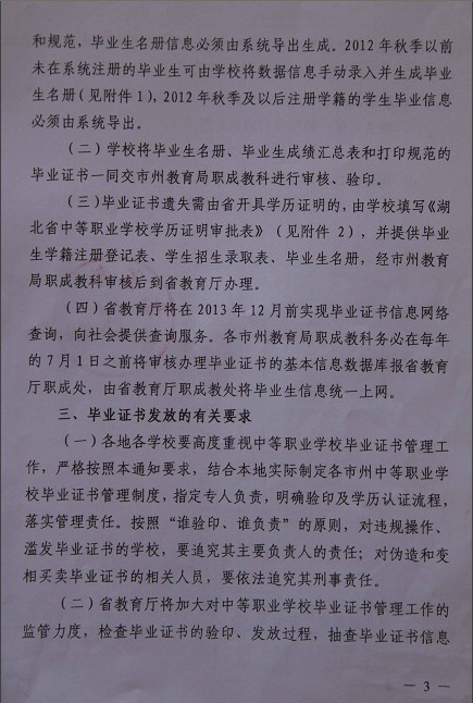 关于中等职业学校毕业证书管理工作的通知