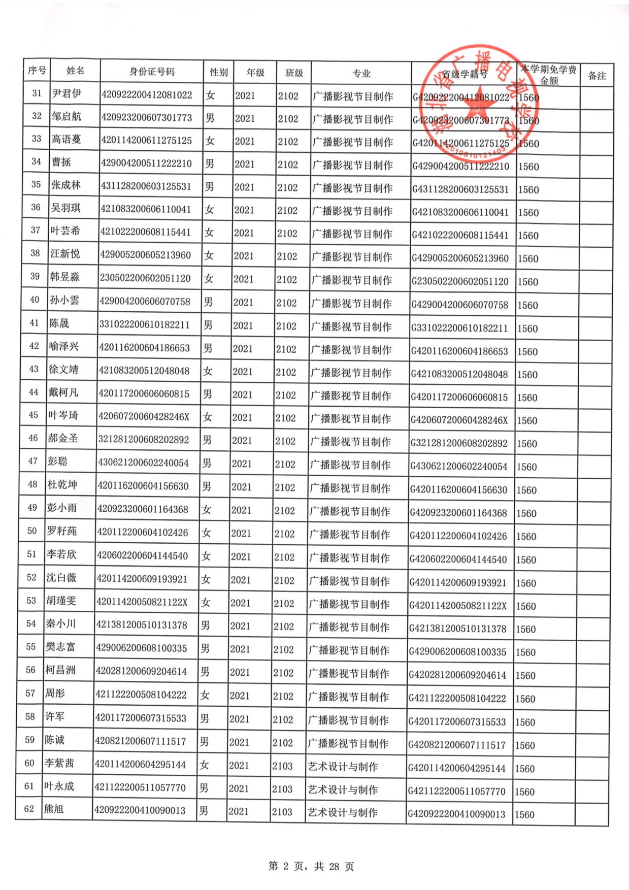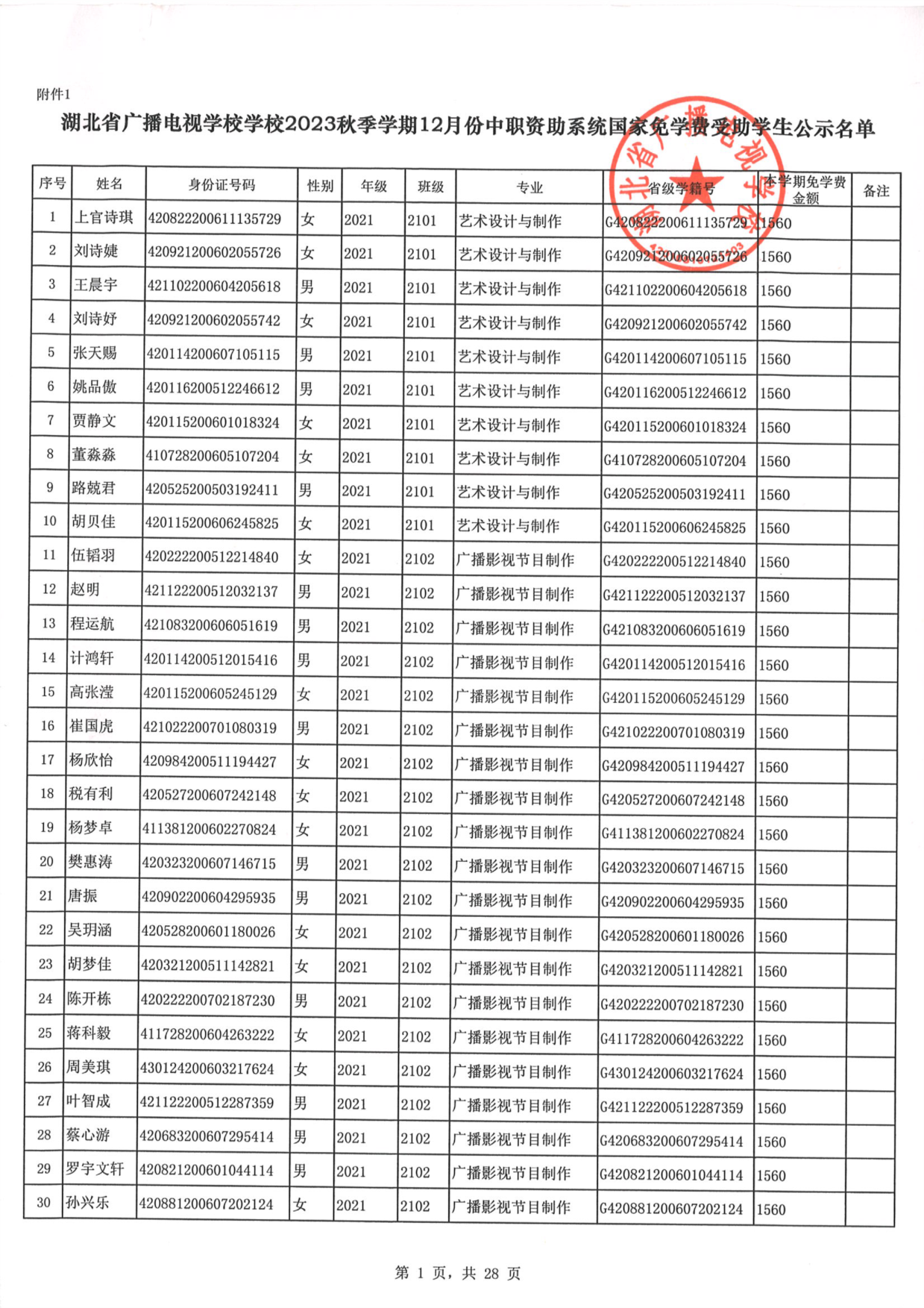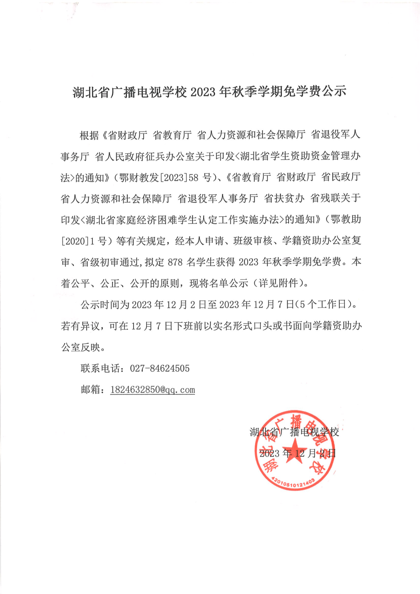 亿德官方官网2023年秋季学期免学费公示